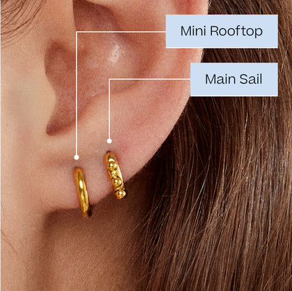 Small beaded hoops crafted from biocompatible titanium. These hoops are safe for sensitive ears, water resistant, and non-tarnishing. The perfect size to hug your ear lobe in a first or second hole.