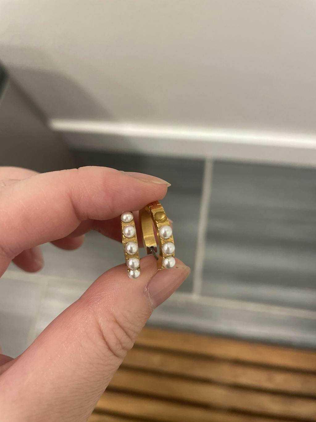 Hypoallergenic pearl hoop bridal earrings made with medical-grade biocompatible titanium. The Abigail Hoops are elevated and feminine, featuring six outer-facing faux-freshwater pearls on a medium-sized square-shaped hoop. With an endless closure the Abigail Hoops are secure and comfortable, making the refined non-allergenic earrings a must-have for brides to be.