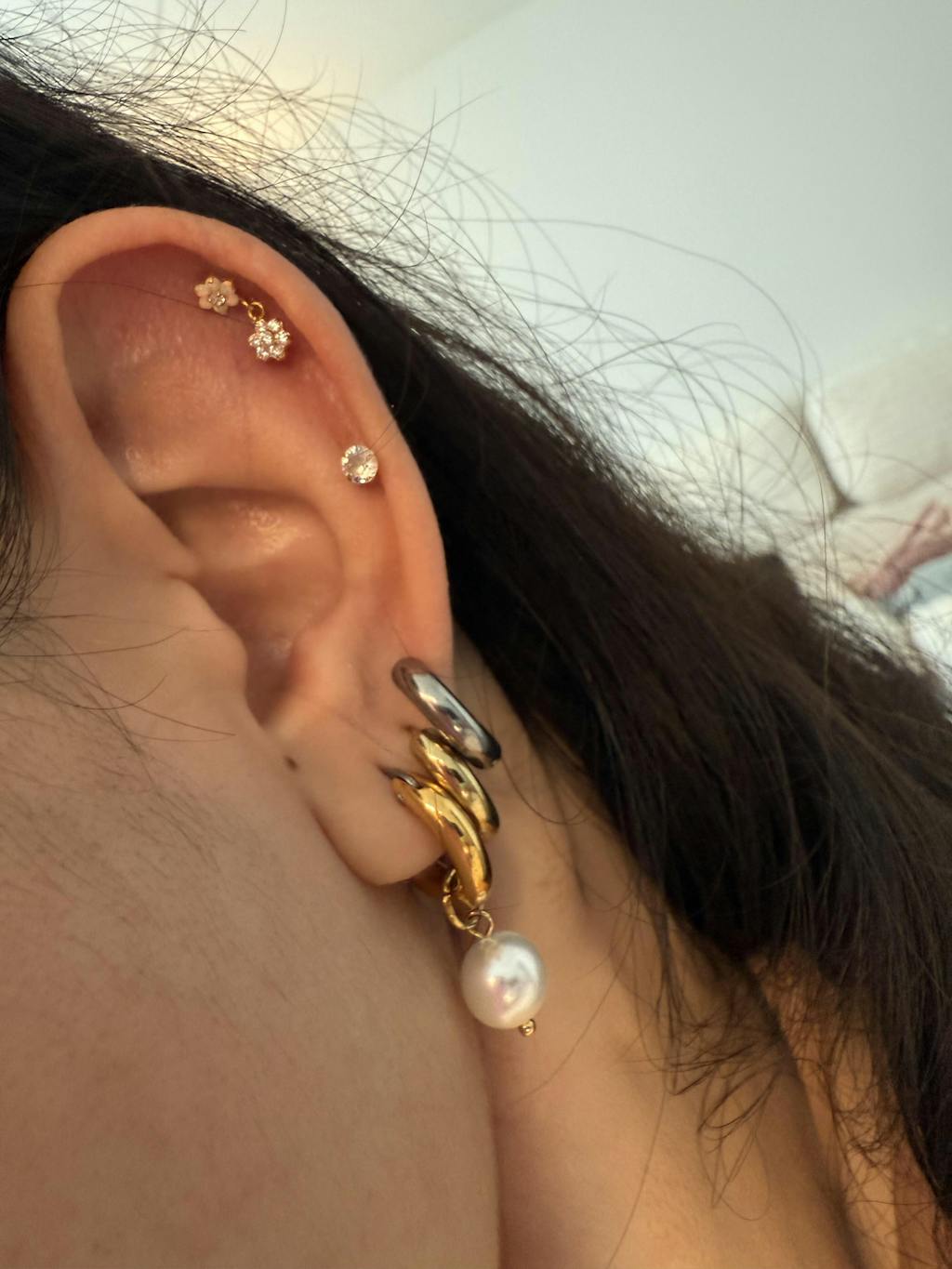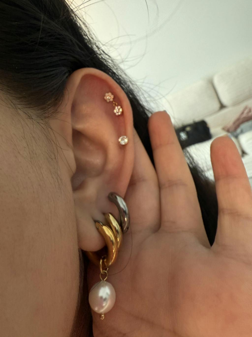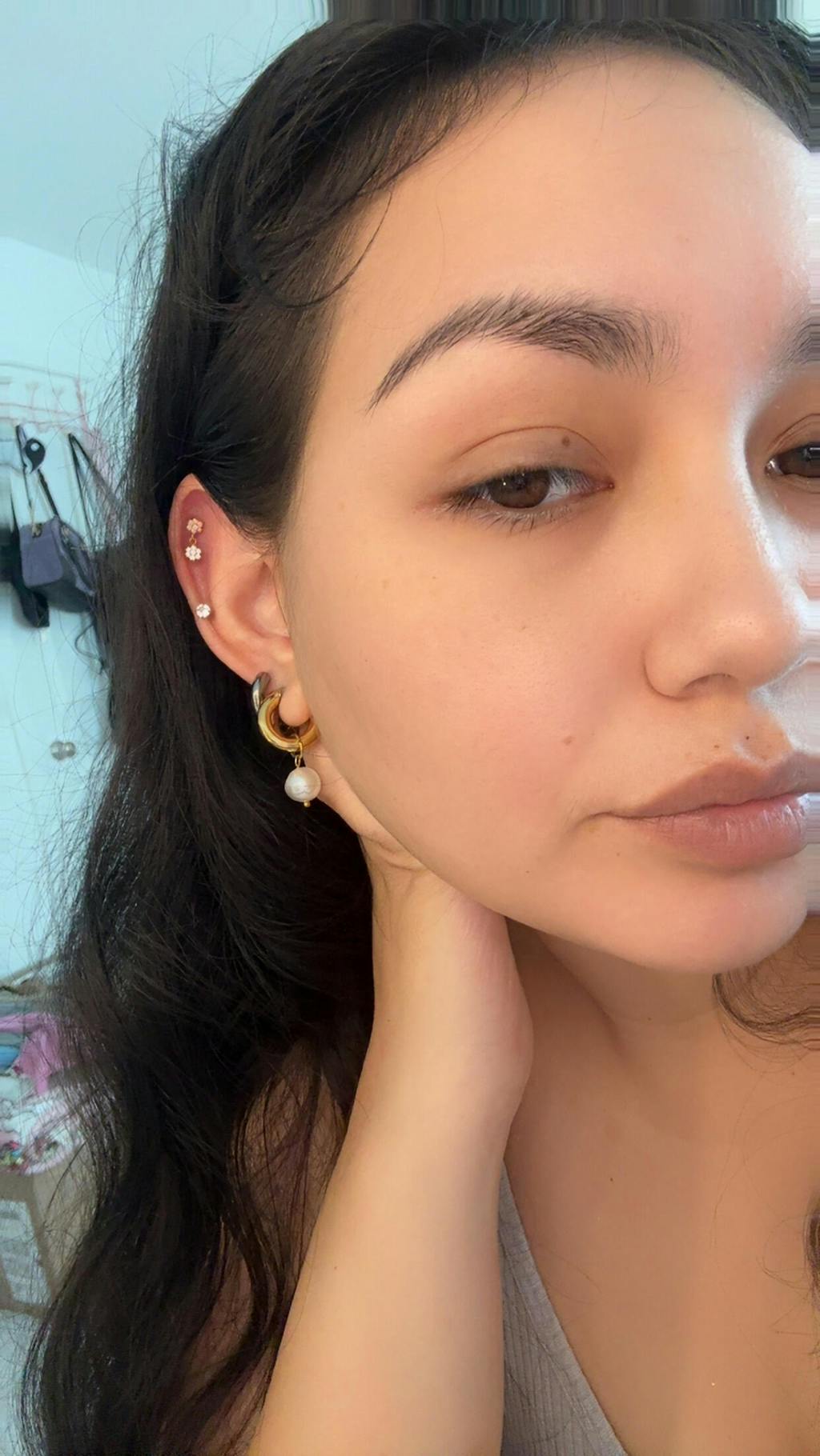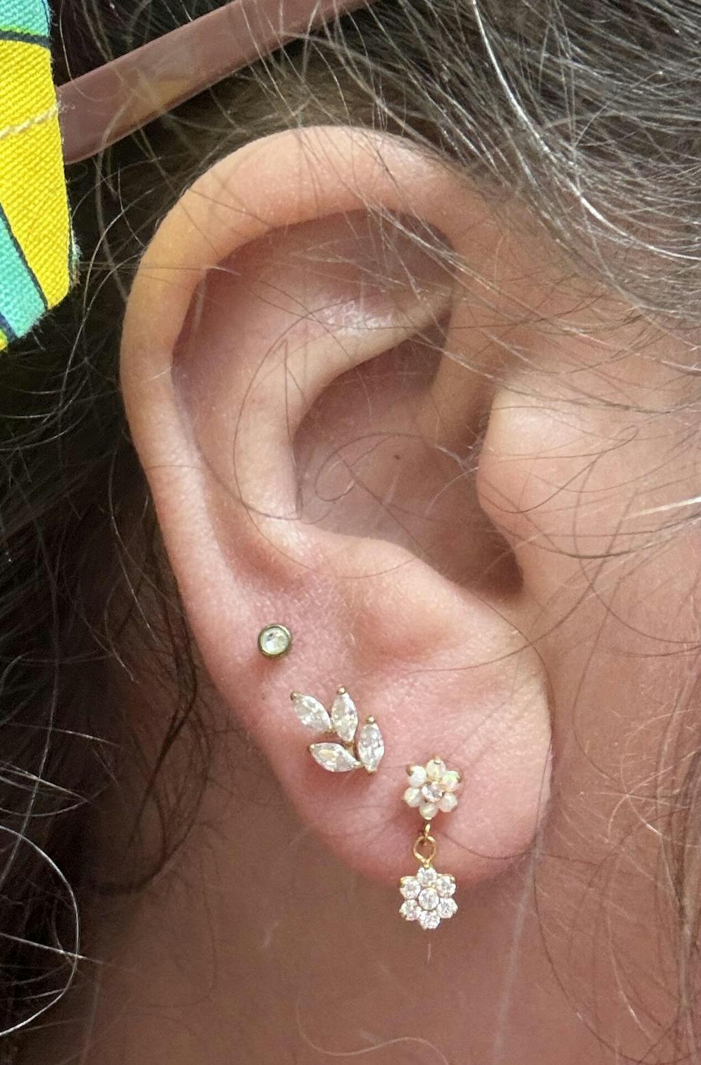 I was scared about this one because it doesn’t have the best reviews, but omg it’s sooo good. I can see where one of the reviews said it was hard to put it in and I can agree with that a bit, but if you use some thin tweezers you can grip the flower enough to twist in your ear area. Once it’s on it’s so secure.