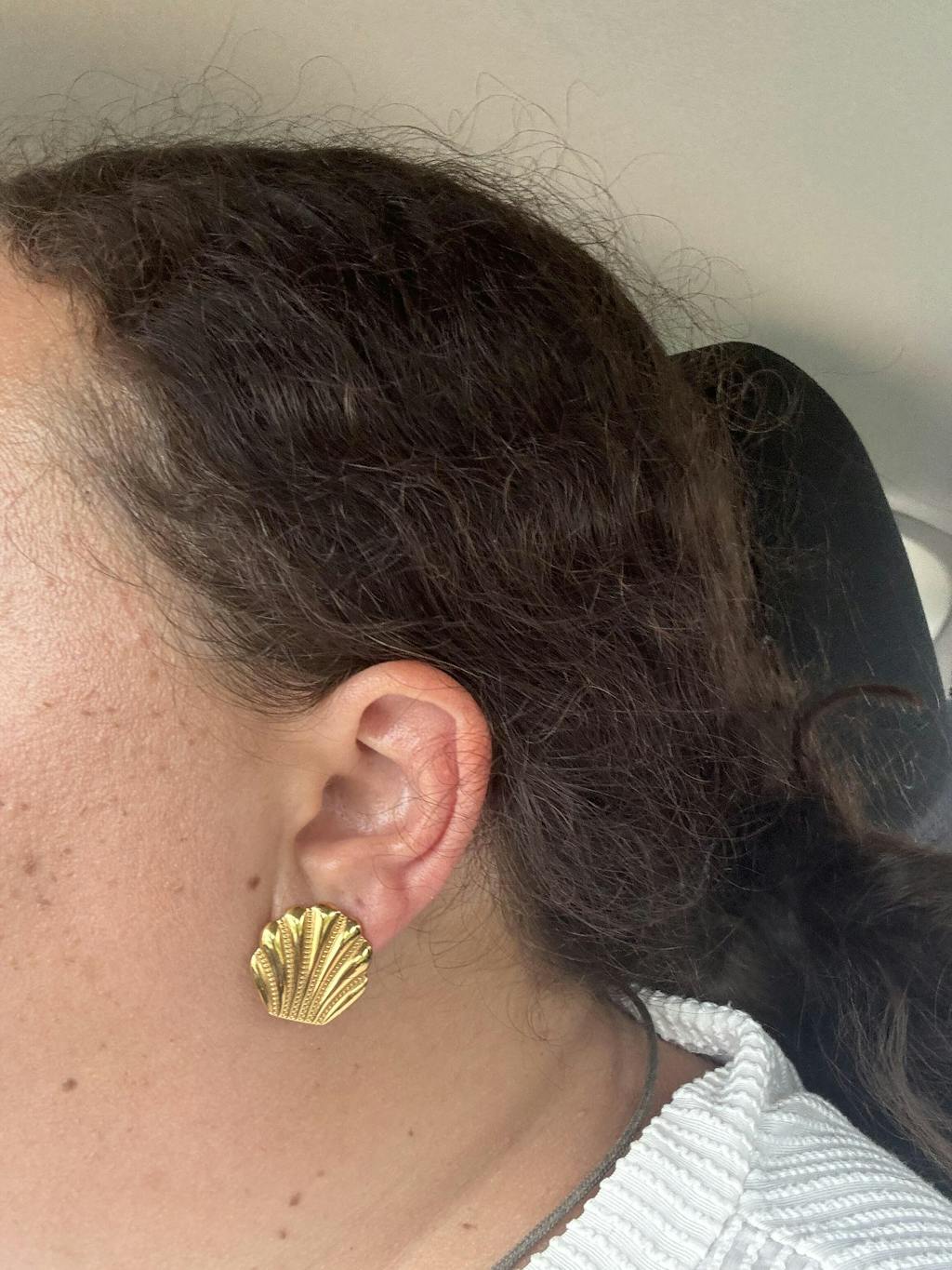These seashell statement stud earrings will be an instant favorite in your summer jewelry collection. The detailing on the seashells makes them look extra elevated and the size is perfect for anything from dressing up a casual outfit to topping off a summer wedding guest look.