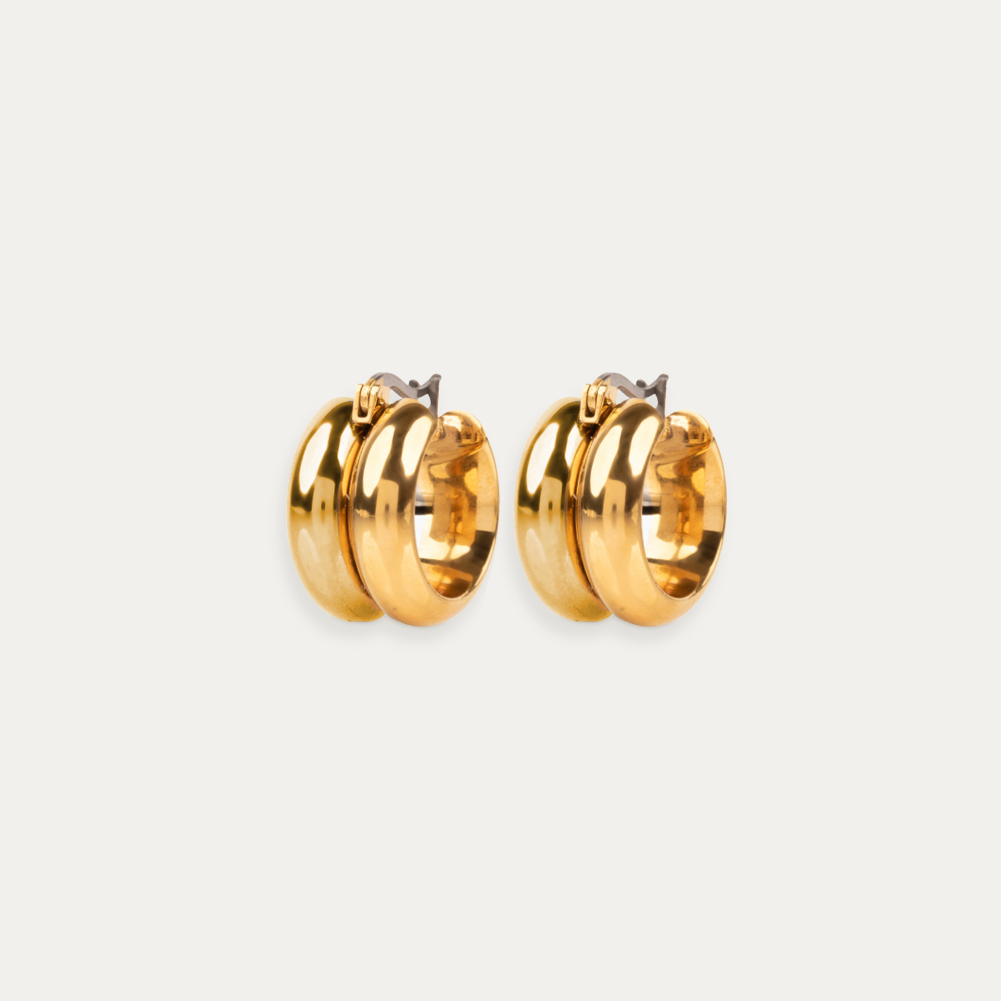 "I have a lot of piercings and am literally always wearing my Tini Lux earrings (seriously, I live in the Resort Hoops). This collection is my version of night out essentials. Simple but glam."
