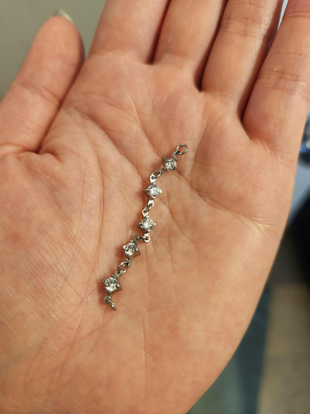 Titanium crystal connector chain that can be used to dress up an ear stack. Each end features a jump ring that can be looped over an earring post or thin hoop. The hypoallergenic crystal chain can be used to connect two different earrings or added to a single stud to turn it into a chain hoop.