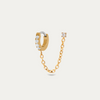 The clear crystal version of our popular Single Perri Hoop, the Single Lara Hoop, features a clear crystal hoop and stud connected by a thin titanium chain. The hypoallergenic crystal hoop and stud earrings can be worn in lobe piercings or from lobe to cartilage piercings. Safe for sensitive skin and made with pure medical grade titanium, the dainty and lightweight hoop earring is refined and elevated.